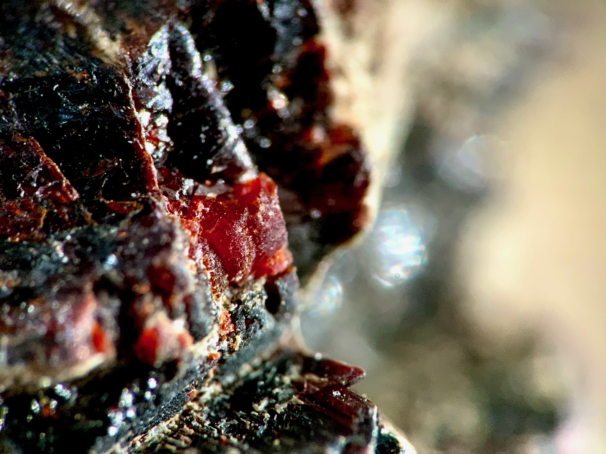 Tantalowodginite, containing well-terminated bright red monoclinical crystals.